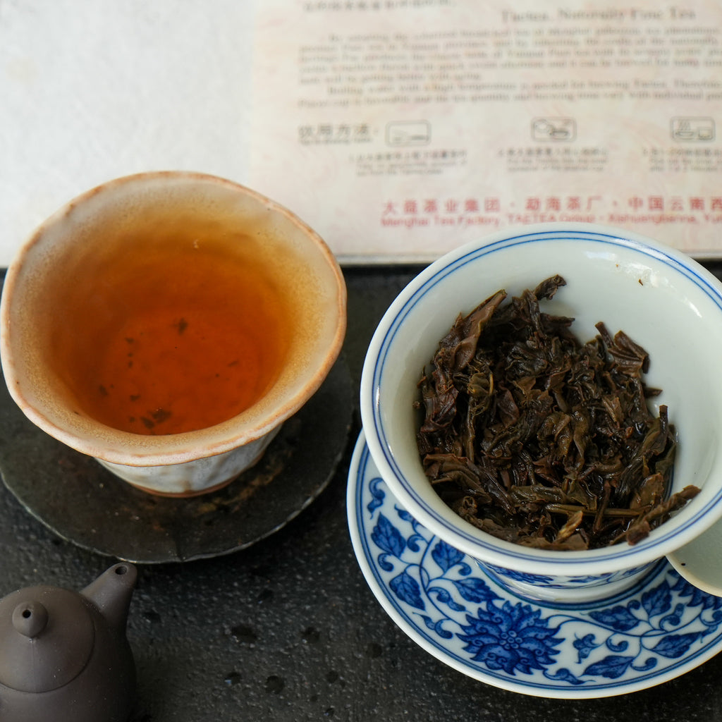 Part of the Chinese Zodiac collection tea cakes made since 2008 year on year by the infamous TAETEA (Dayi) tea factory. Explore intricate depths of aged Pu'er with our Year of the Snake Taetea (Dayi) Sheng Pu'er. Harvested in the year of the snake and patiently matured for over the last 12 years, this tea offers a remarkable journey through taste and time. The initial dryness quickly gives way to a deep, resonant sweetness, mingling with the authentic aroma of old arbor trees. Subtle notes of steamed sticky rice and bamboo leaves (zong ye) are complemented by a developing vegetal quality through subsequent infusions. Persistently sweet with a hint of smoky rock sugar in the finish, this tea promises a complex and rewarding session for any tea aficionado.