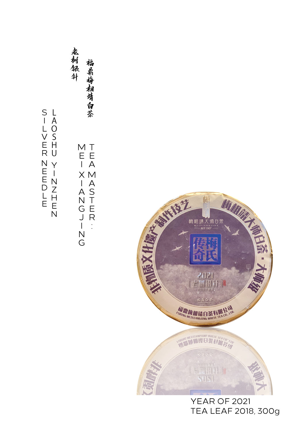 老树银针: The product showcases a special edition of Baihao Silver Needle cake from Master Mei Xiangjing using 2018 Maocha as its base. Baihao Silver Needle, also known as Pekoe, derives its name from the appearance of its dry leaves – remarkably white like silver and exceptionally slender akin to a needle. Pekoe tea has long been regarded as the best of the pure white tea varieties, even earning the honor of being presented as a tribute to the royal family throughout various dynasties.