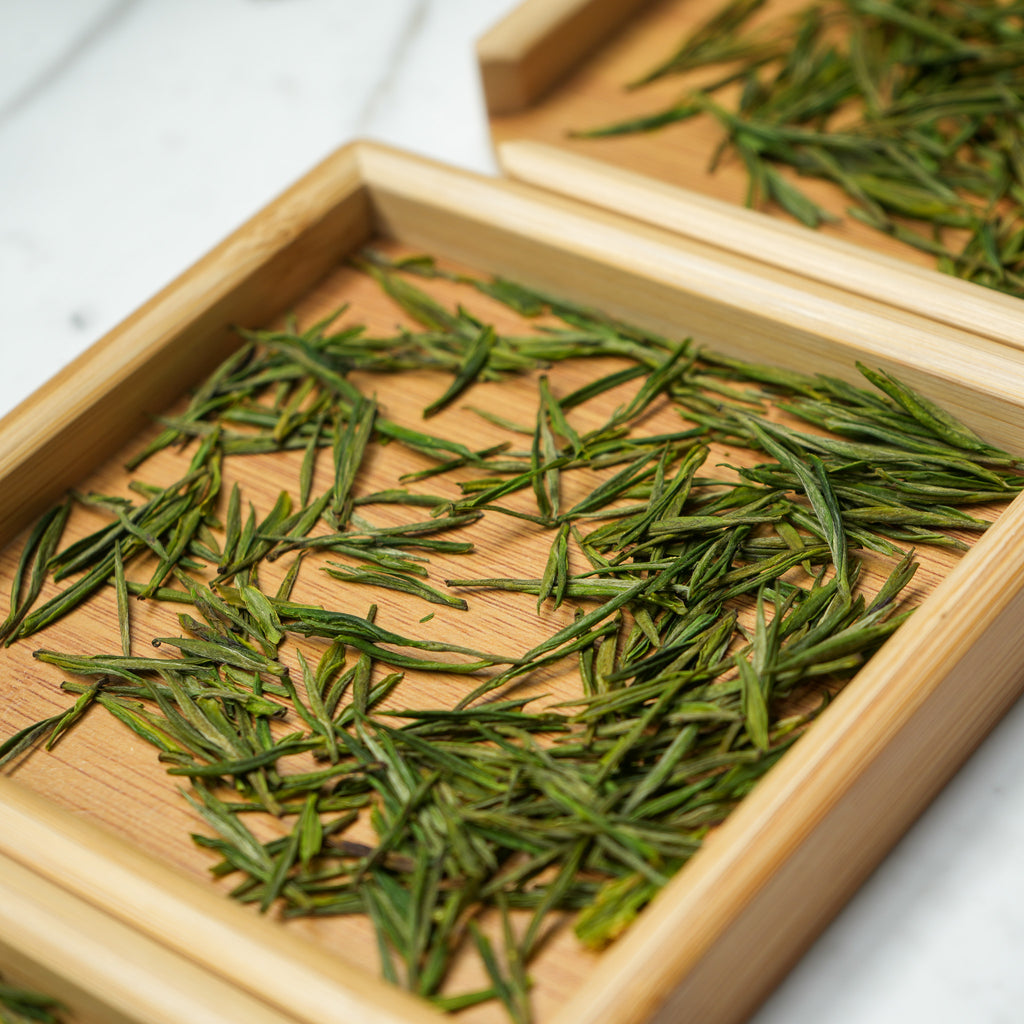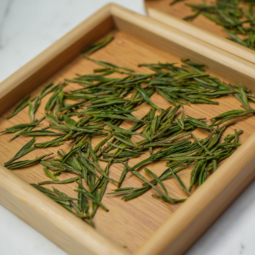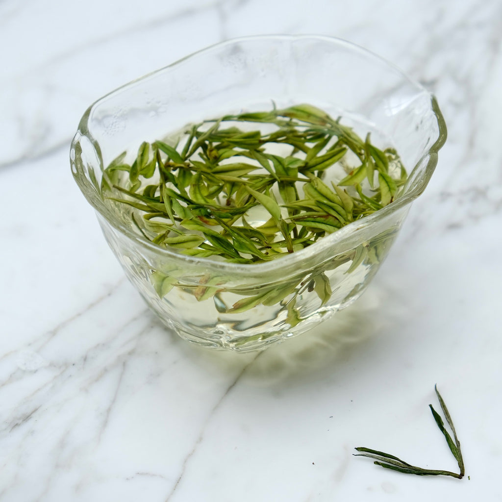 Our Pre-Qing-Ming Anji Baicha is characterized by its delicate, light, and refreshing flavor profile. As you take your first sip, you'll notice a captivating floral aroma, followed by a smooth, sweet taste with subtle notes of spring blossoms and fresh-cut grass. The tea leaves unfurl beautifully, revealing a pale jade hue that adds to its elegance and charm. The pale jade color is where its name 'Bai Cha' comes from, which means 'White Tea'. A common misconception coming from even most Chinese people, that Anji Bai Cha is White Tea, but it's actually one of the most exquite of Green tea!