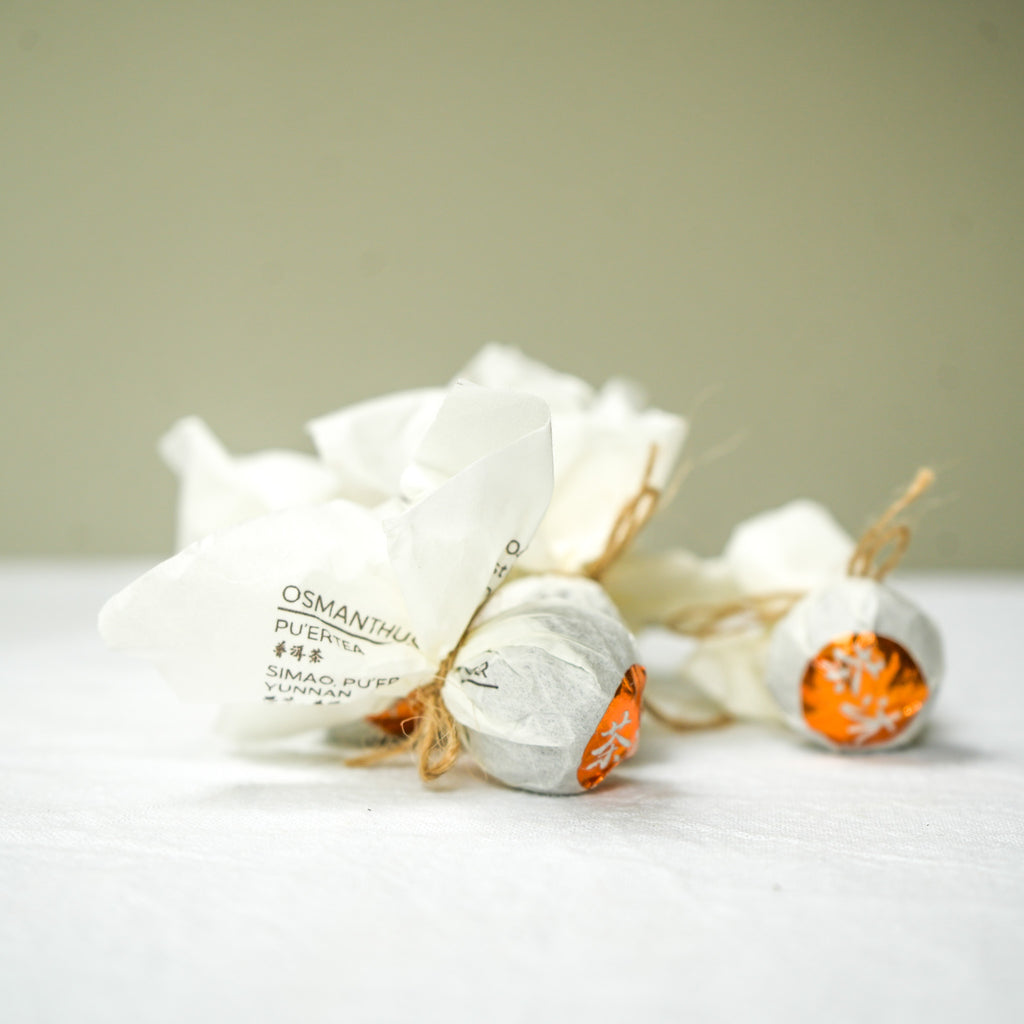 🌸 Osmanthus Shu Pu’er – Aged dark tea infused with fragrant osmanthus flowers, bringing a harmonious balance of ripe fruitiness, warmth, and subtle floral notes.