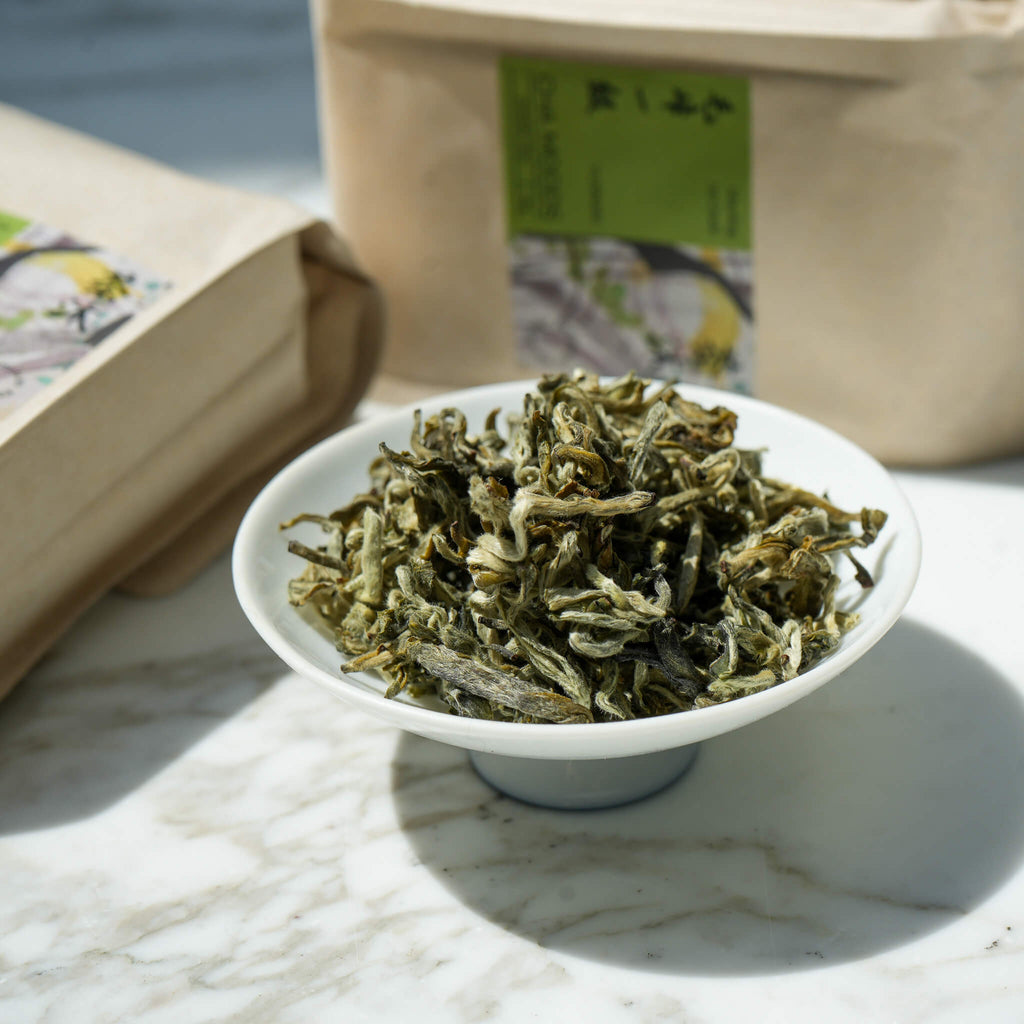 As the classification ‘1st Grade’ suggests, this green tea comes from the finest Spring harvest of the tea farm in Lin Cang, delicate and flat, with a few sharp edges, and the color is light and smooth green. It is from a tea farm that uses Da Ye Zhong cultivar, unlike most other green tea, and gives off a very unique mellow umami taste and vegetal aroma, a must try for those who are curious!