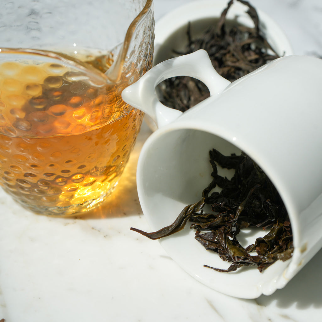 This Rougui from Da Wang Feng with the essence brought by the mountain terrain, undergoes a traditional light roasting process. It possesses an excellent balance of cinnamon flavor and aroma, with a rich floral fragrance. The taste is mellow and full-bodied, and the lingering aftertaste is powerful. The lingering aroma in the cup is as dominant as the grandeur of the King Peak itself. This tea is crafted using traditional baking techniques.